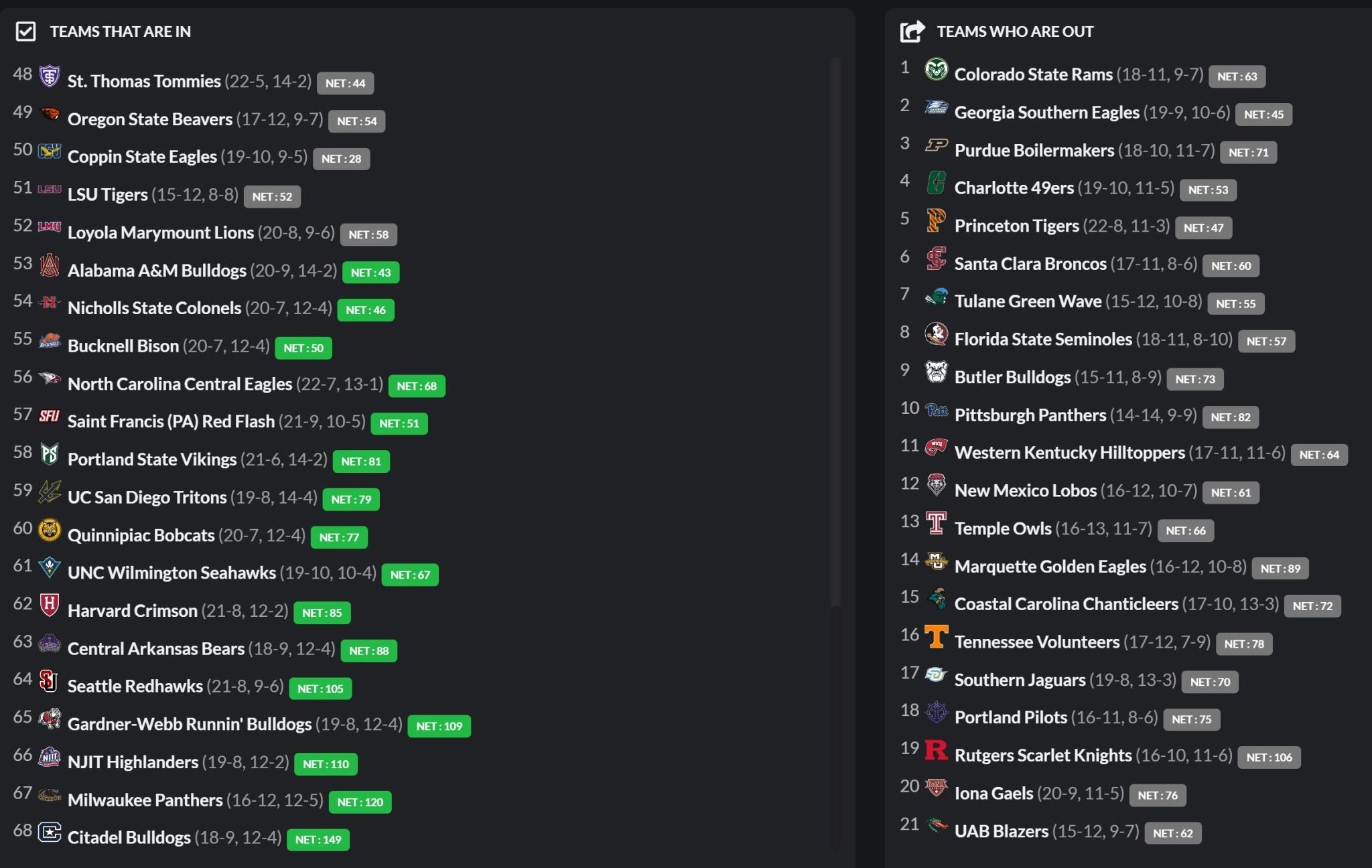Another team that is battling to get in, is Butler (15-11) who right now needs to make a good conference tourney run.
