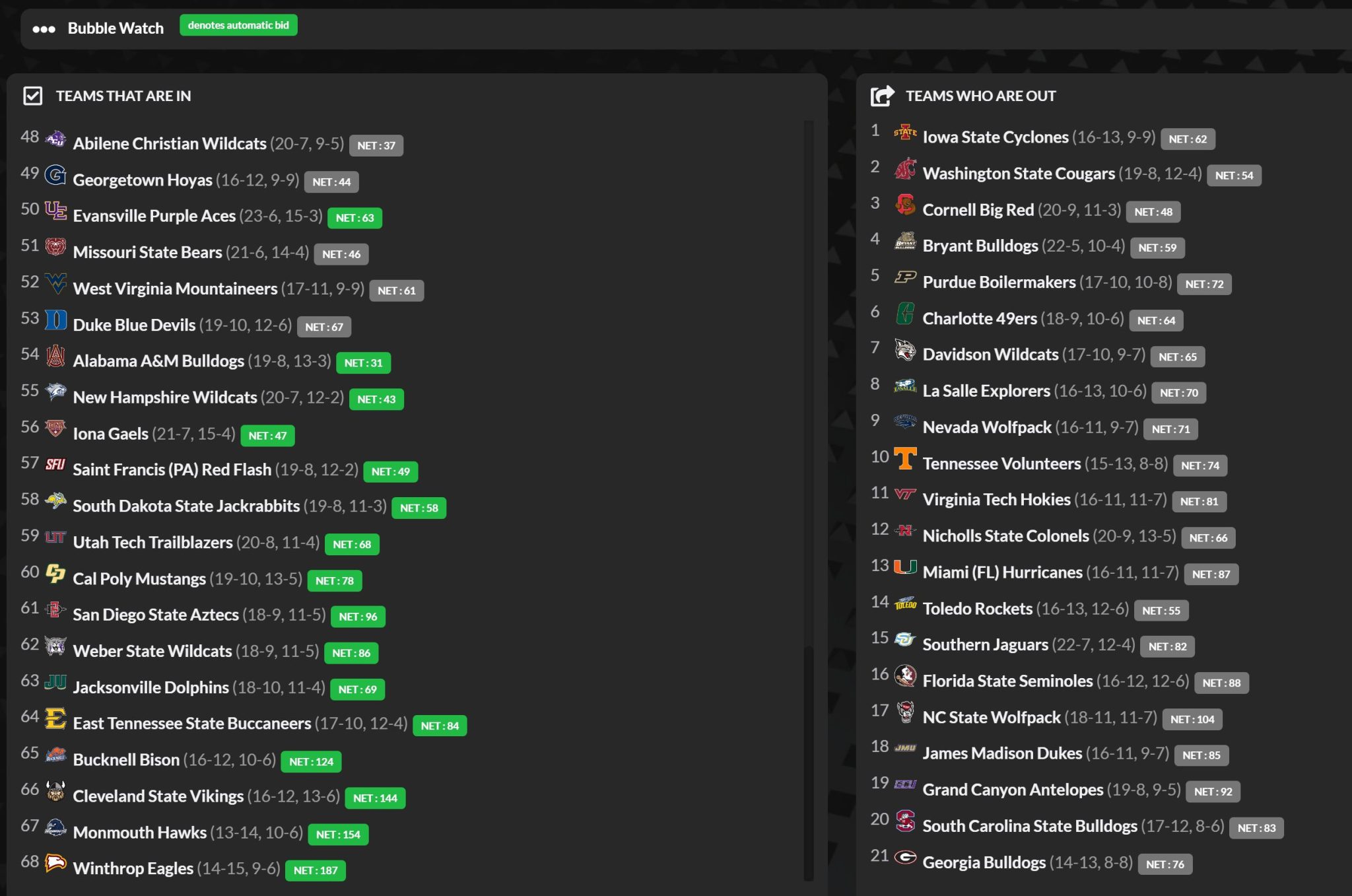 The updated CBGM Bubble Watch is out. Check out who’s potentially in and who’s potentially out.