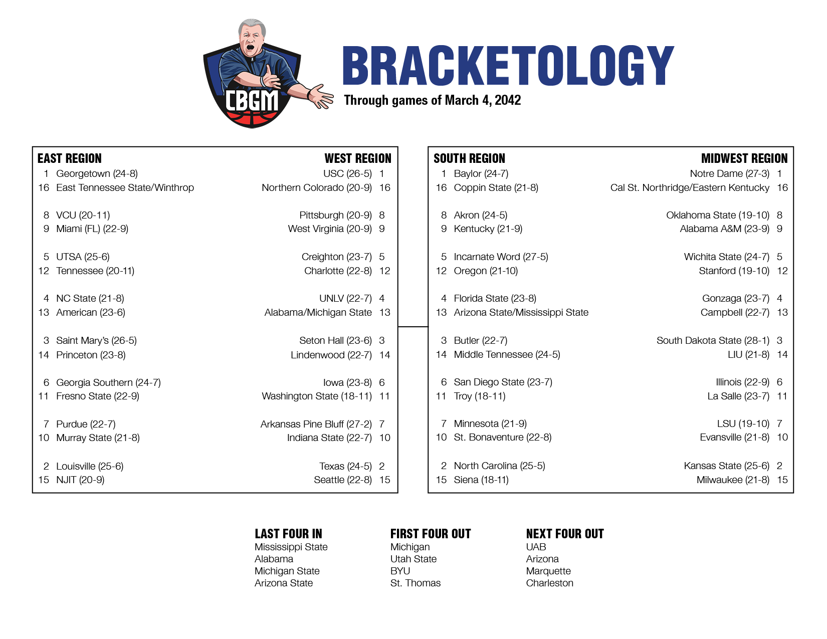 The regular season has come to a close and conference tournaments are getting underway. Itβs the best time of the CBGM year, when seasons are made or broken. A new bracket is in order!