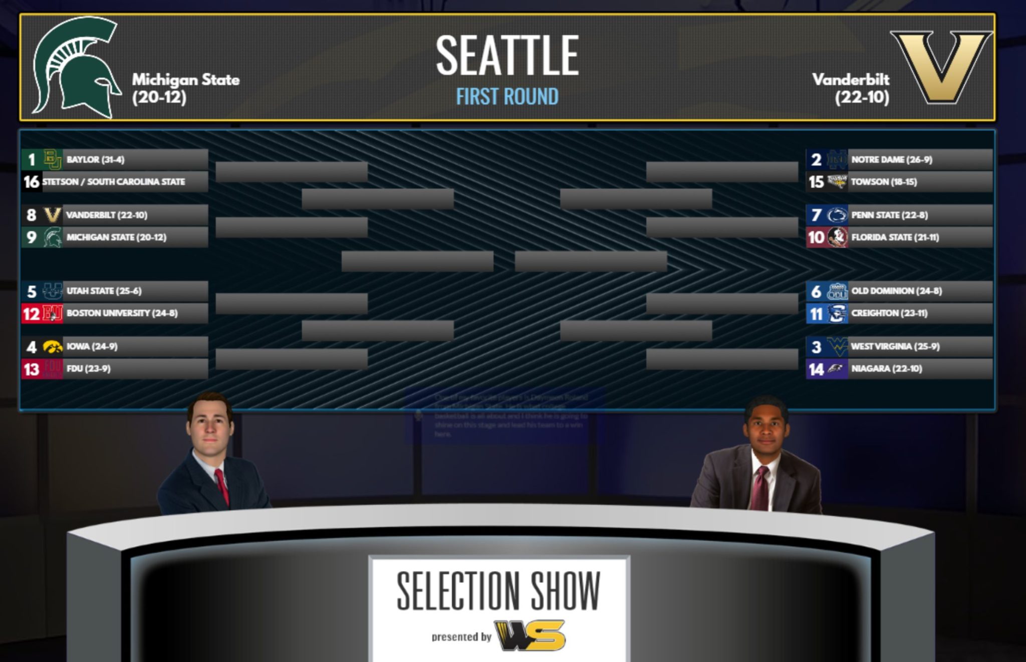 (8) Vanderbilt (23–11) vs. (9) Michigan State (22–12)