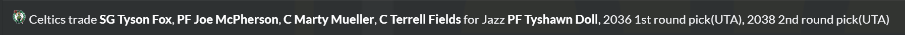 The Celtics are picking up a huge PF and top 50 player in Tyshawn Doll (Creighton), while also getting some draft picks for the future.