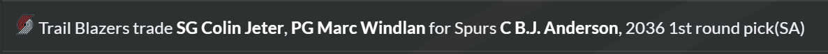 This deal is also a massive one. Colin Jeter (Syracuse), who’s had a great pro career so far but having to share the backcourt with Marco Logan (Baylor) is now onto the Spurs to help carry that team.