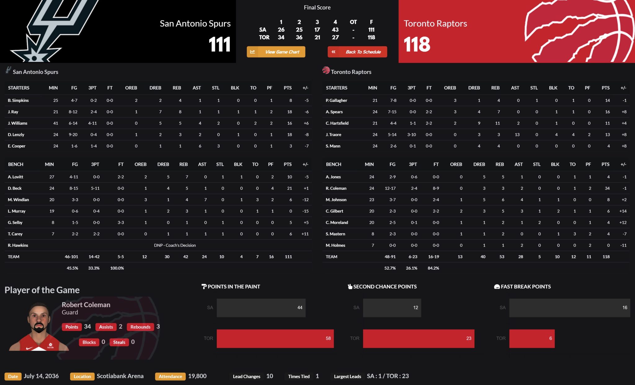 Semi-Final #2: San Antonio Spurs and Toronto Raptors