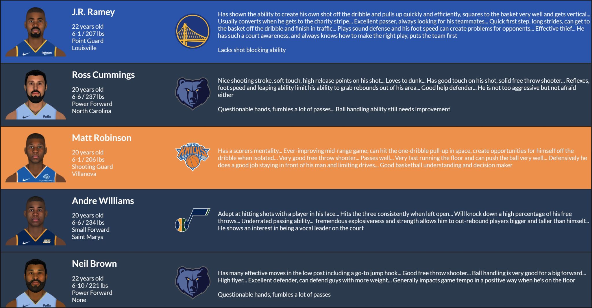If you want to see more in-depth detail on the stats and ratings for these players, look up the player name here on the index page!