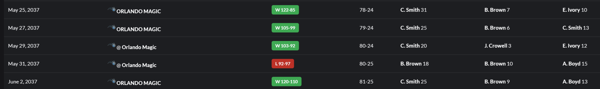 Charlie led in scoring 4 of 5 games. So many players go involved in spreading this around to knock off these Orlando Magic.