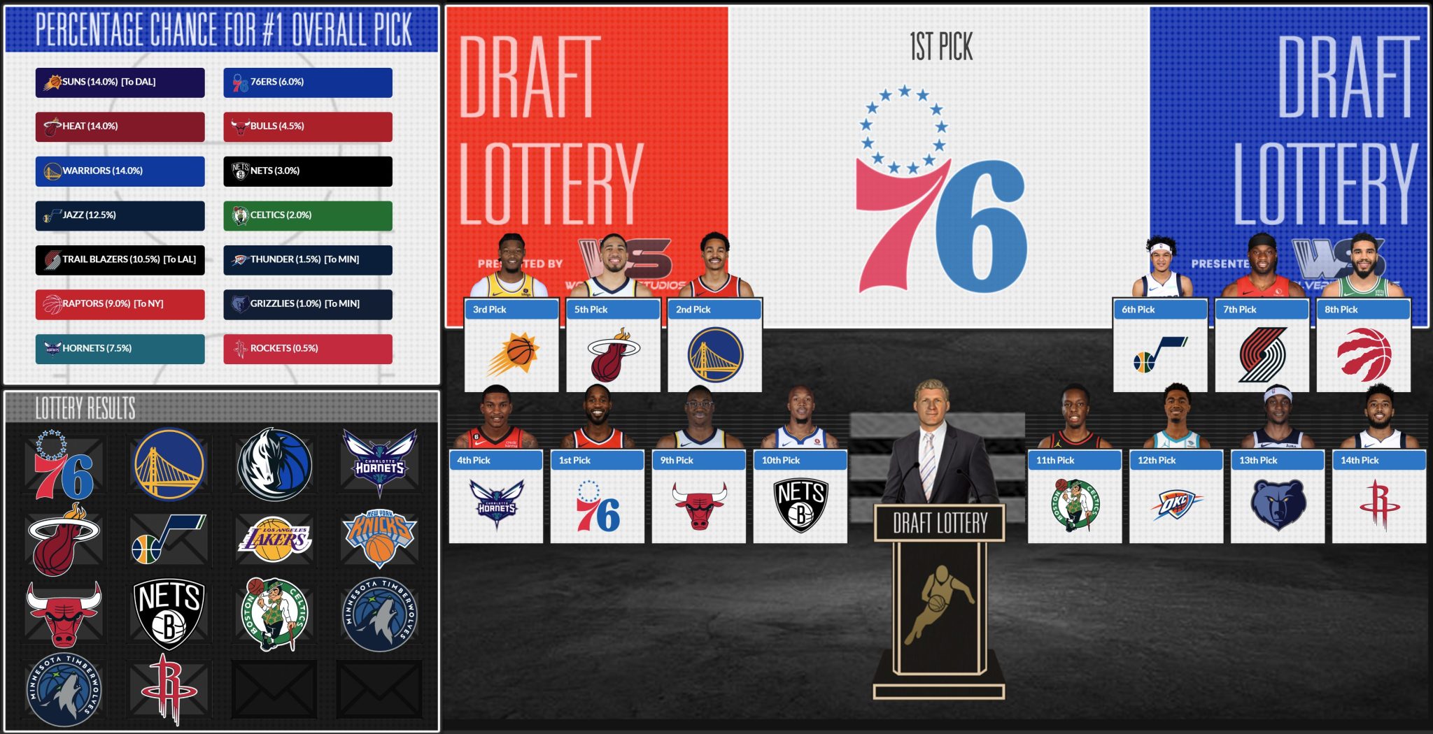 The 76ers have won the lottery, moving up from 6% to take the top pick!