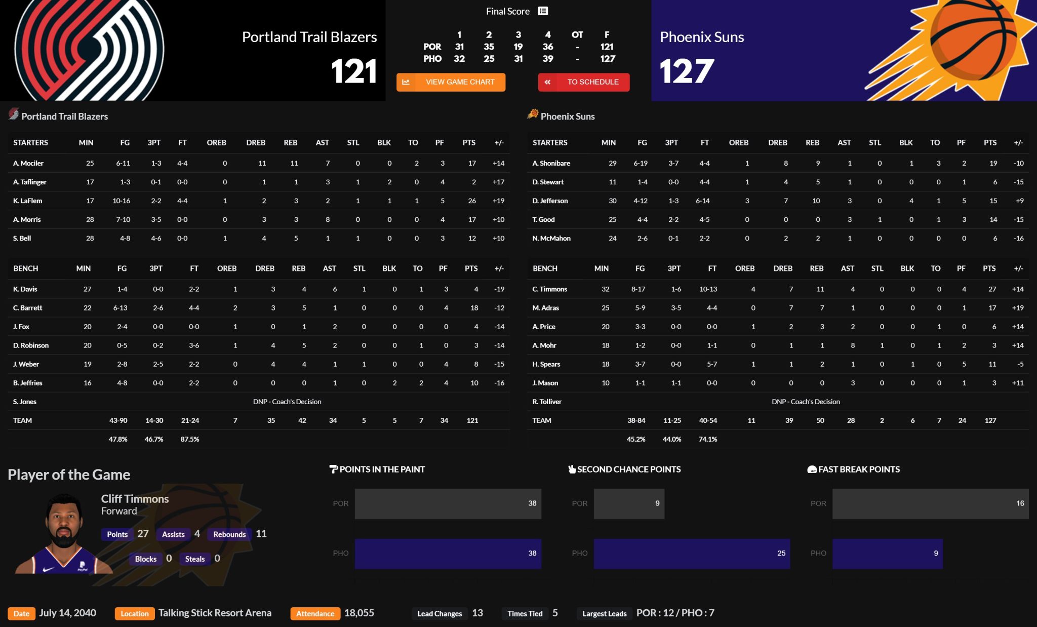 Semi-Final #2: Portland Trailblazers vs Phoenix Suns