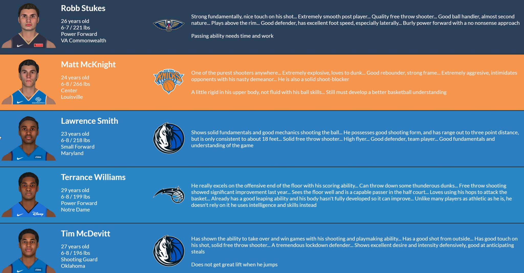 If you want to see more in-depth detail on the stats and ratings for these players, look up the player name here on the index page!
