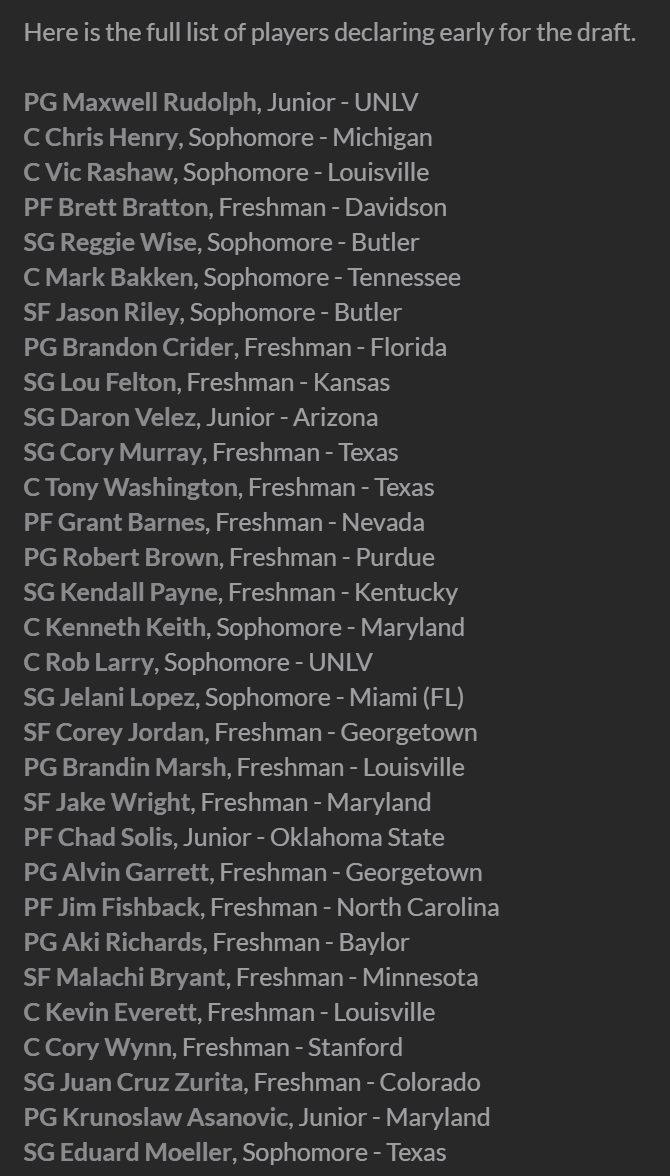 Let the mock drafts begin. It’s the Going Pro Early list and as can be expected, the higher prestige schools will see some of their roster exiting the CBGM to chase money in the NBGM.