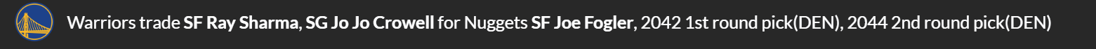 Ray Sharma (Georgetown) joins him in the swap in Denver. Denver is giving up a 1st rounder to make this possible and Sharma is definitely the key person in this trade.