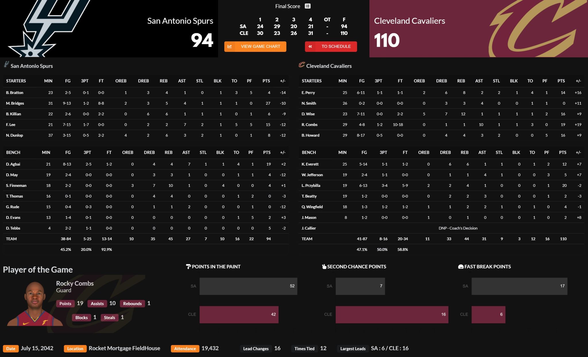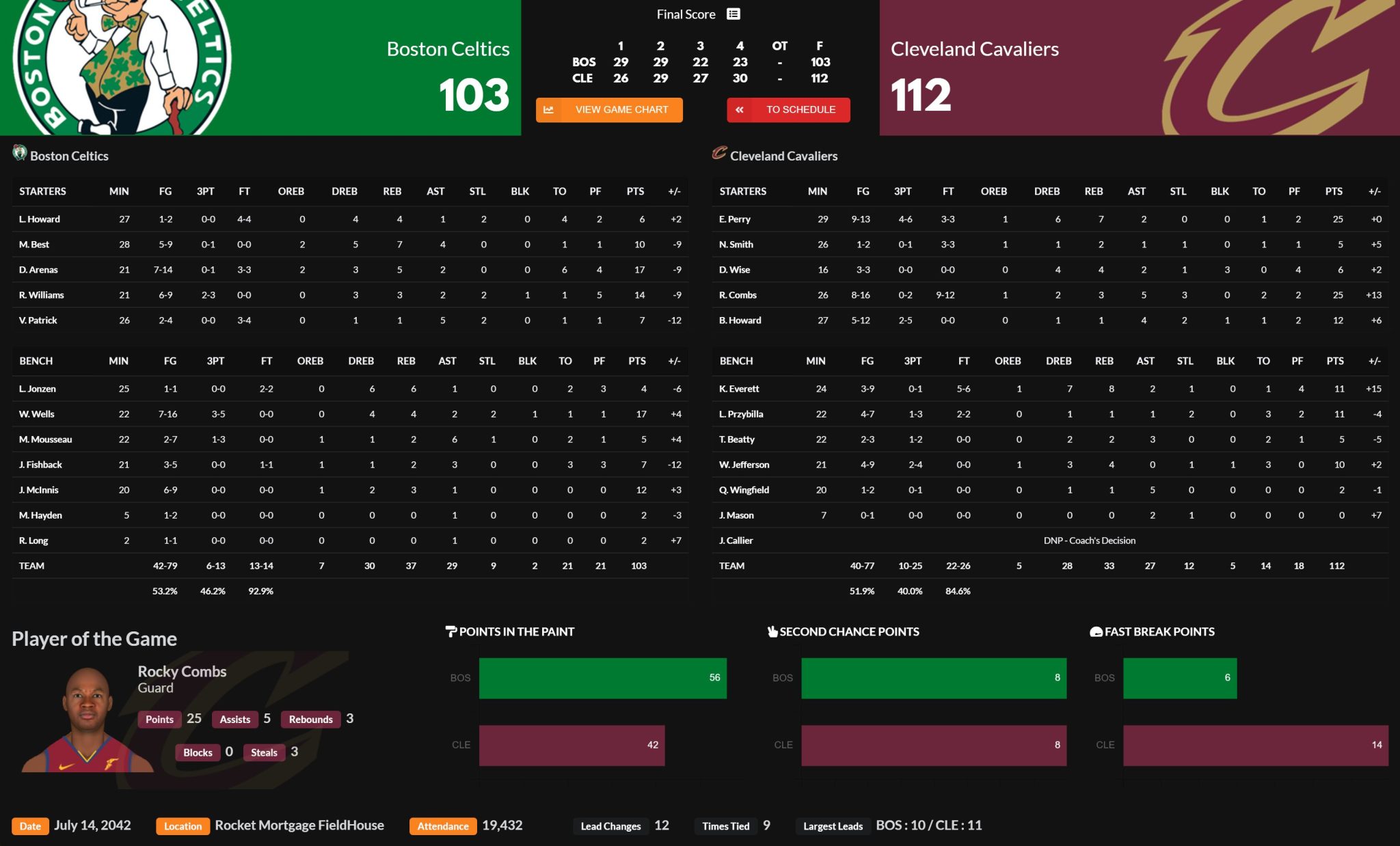 Combs (FSU) had the best all round game for Cle with 25-5-3 performance