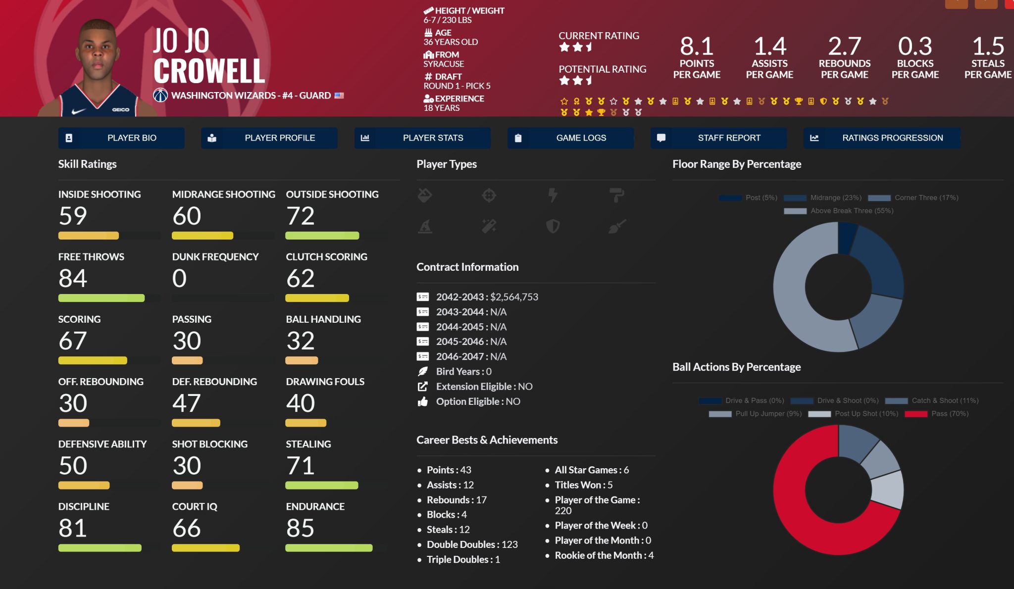 Legend Jo Jo Crowell sticks around ANOTHER season to play with Wiz (1 yr / $2.6 mil)