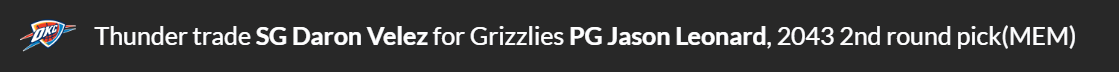 The scoring thread Velez (Arizona) is already being moved out. Which is very odd because Leonard (SDSU) is a journeyman from the G League and only a 2nd on top. Thunder must be in some dire financial situation.