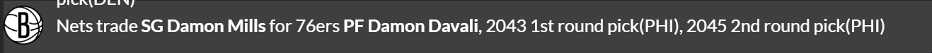 Davali (St Marys) and their pick seemed to be enough to pry Mills from Brooklyn.