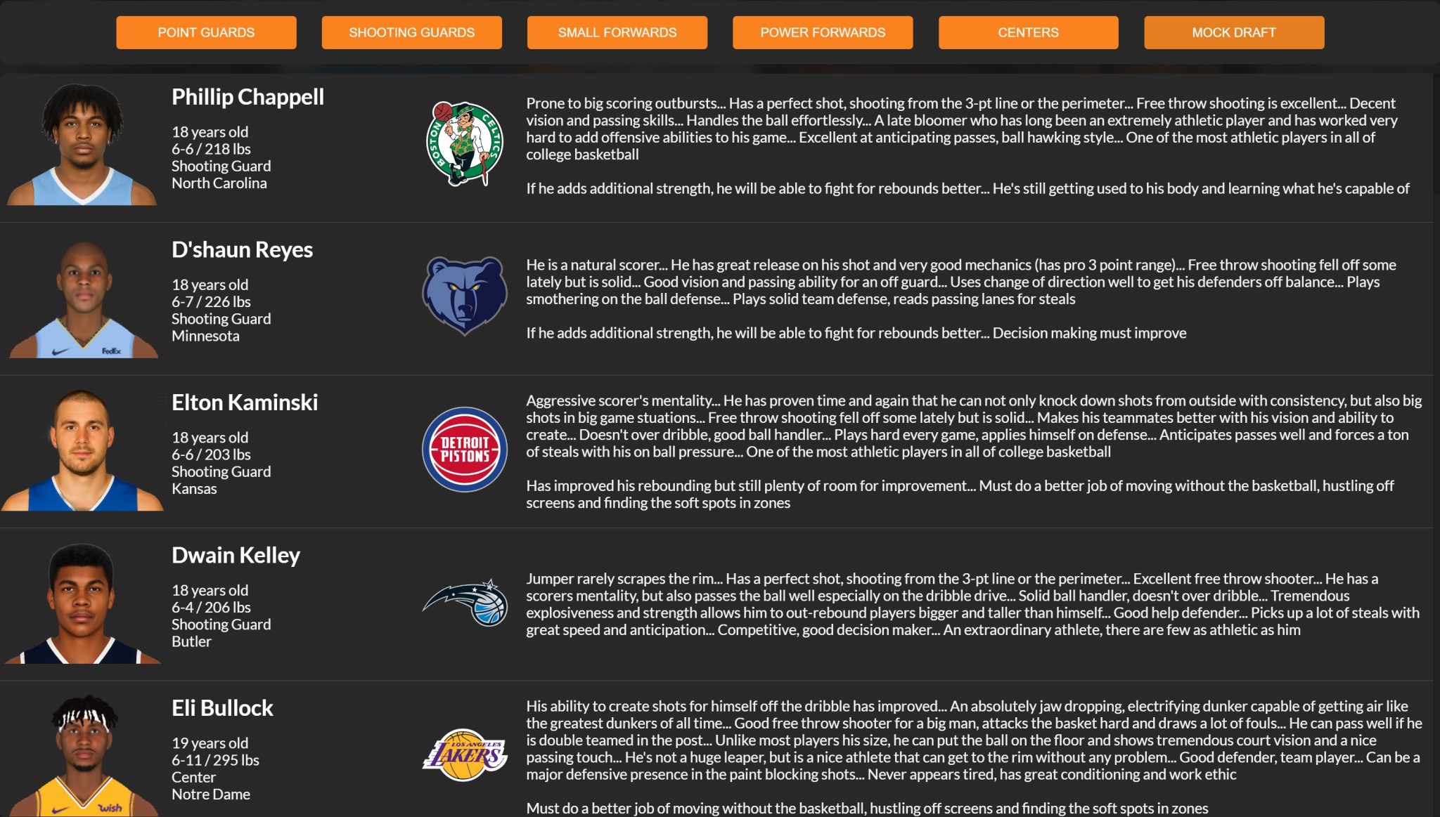 Top SG in NBGM Draft