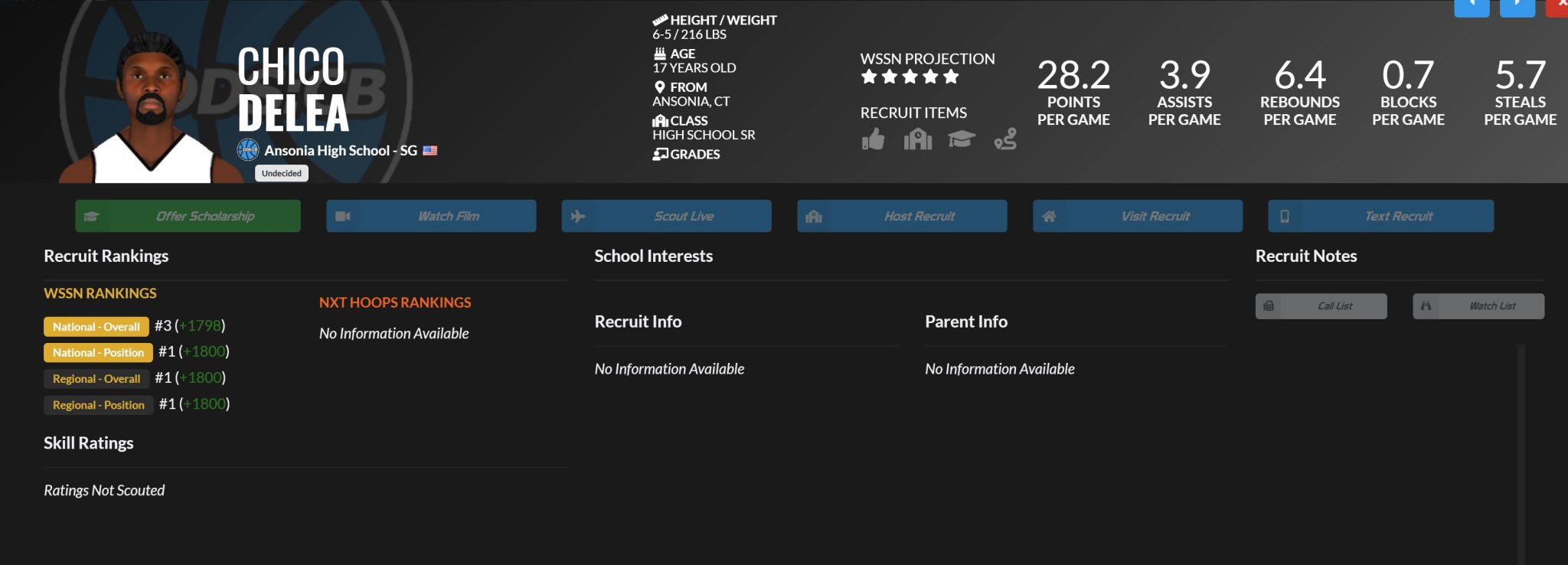 Next, Sitting as High School’s second-leading scorer and sitting at #3 in the NXT Rankings is Chico Delea, a shooting guard out of the state of Connecticut.