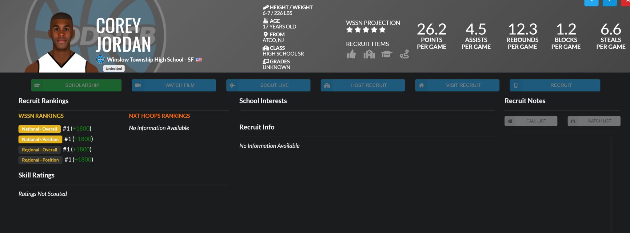 Sitting at #1 in the NXT Rankings is Corey Jordan, a shooting guard out of the state of New Jersey.