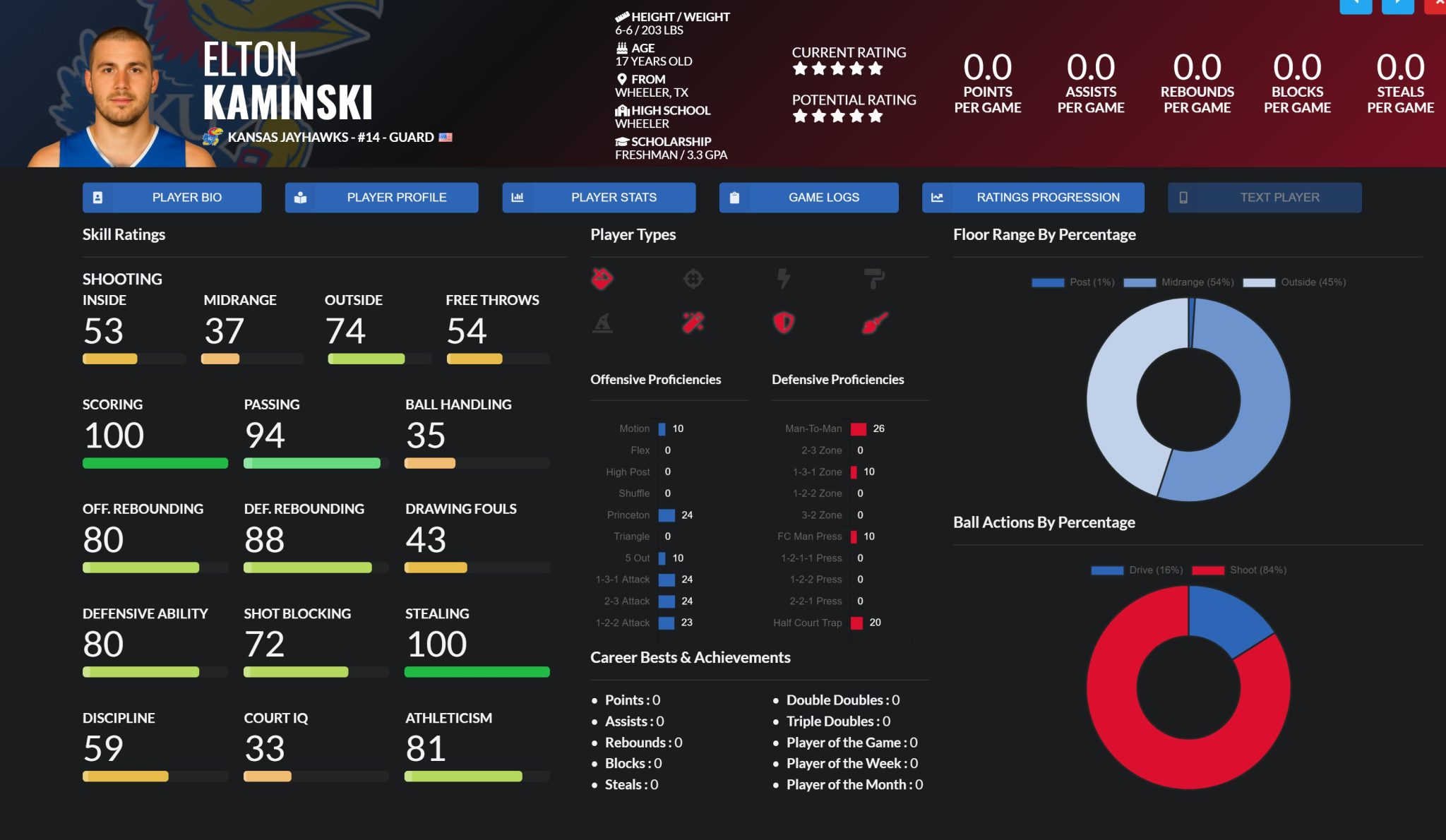 Elton Kaminski is a big guard with the kind of natural flair that jumps off the floor. He’s confident, smooth, and has that scorer’s instinct that can’t really be taught — the ball finds energy in his hands. He loves to pull up from deep and isn’t shy about taking shots in rhythm, even when they’re tough. There’s a quiet swagger to his game, and when he’s locked in, he can control the flow with his vision and feel.