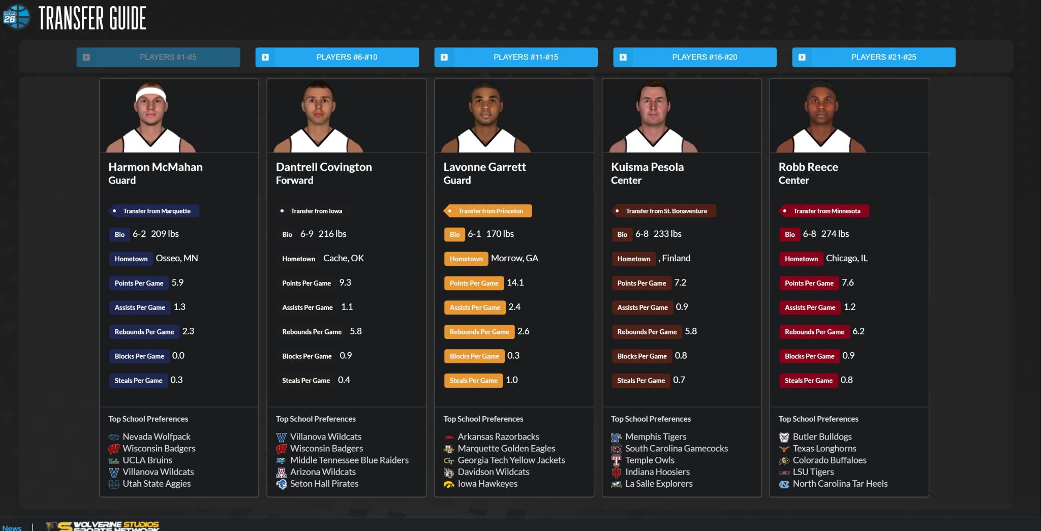 Reece feels like a tactical weapon. Against the right opponent, he could look like a portal steal. Against the wrong one, the limitations become more obvious. That makes him one of the more scheme-dependent, but also one of the more dangerous, bigs in the group.